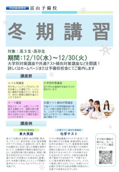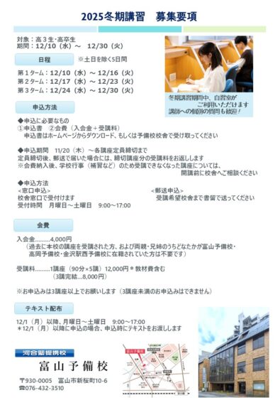 富山予備校生以外の方の申込受付は、11月20日(木)より承ります。